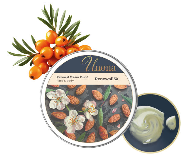 Эффективно питает, смягчает и успокаивает кожу, обеспечивает ее увлажненность, стимулирует регенерацию, способствует снятию сухости, раздражения, воспаления после бритья, пребывания на солнце. Предотвращает сухость и обветривание кожи, восстанавливает её структурные барьеры. Улучшает тургор, омолаживает, разглаживает, выравнивает её тон. Крем Renewal15X поддерживает естественный микробиом кожи, обеспечивая её здоровье. Подходит как лубрикант, даёт длительное скольжение при массаже. Можно использовать для массажа лица и тела при помощи скребка Гуаша.